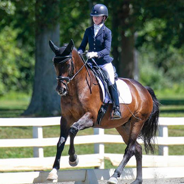 Emily’s approach to training is straightforward: focus on the pyramid of dressage training, with abundant patience and consistent work. She loves the individual personalities and learning aptitudes of each horse. She helps horses—and their riders—use their strengths to work through their weaknesses. She knows that progress is not linear. She helps horses love their work and riders connect to their joy in the saddle.